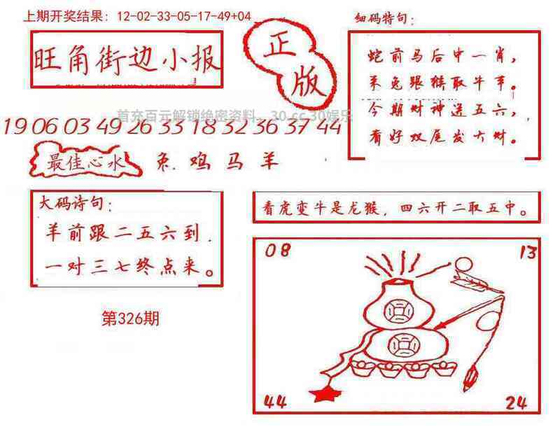 | 326期 | 蛇 | 蓝波双 | 5尾 | 开猪19 |